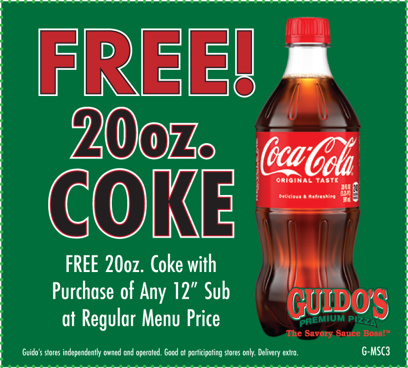 FREE 20oz. Coke/With Purchase of Any 12" Sub